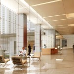 -Two separate banks of passenger elevators, all with custom designed cab finishes, serving the Low Rise and High Rise zones and three parking garage elevators that overlook Discovery Green park