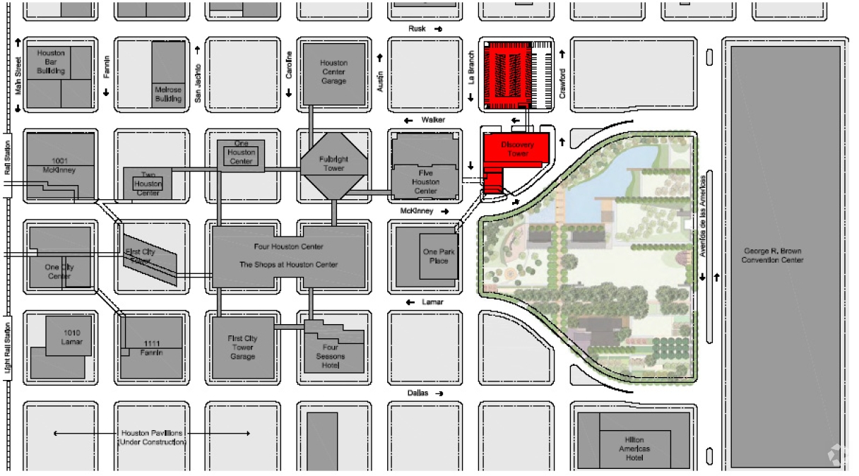 Situated on one of the most high-profile sites in Houston, the future project will be located in the heart of Houston’s Entertainment District and overlooking the new $93 million, 12-acre downtown park, Discovery Green. The site is also in close proximity to Houston Center, Four Seasons Hotel, Hilton Americas Hotel, Toyota Center, Minute Maid Park, George R. Brown Convention Center, and One Park Place, a high-rise residential development under construction.