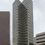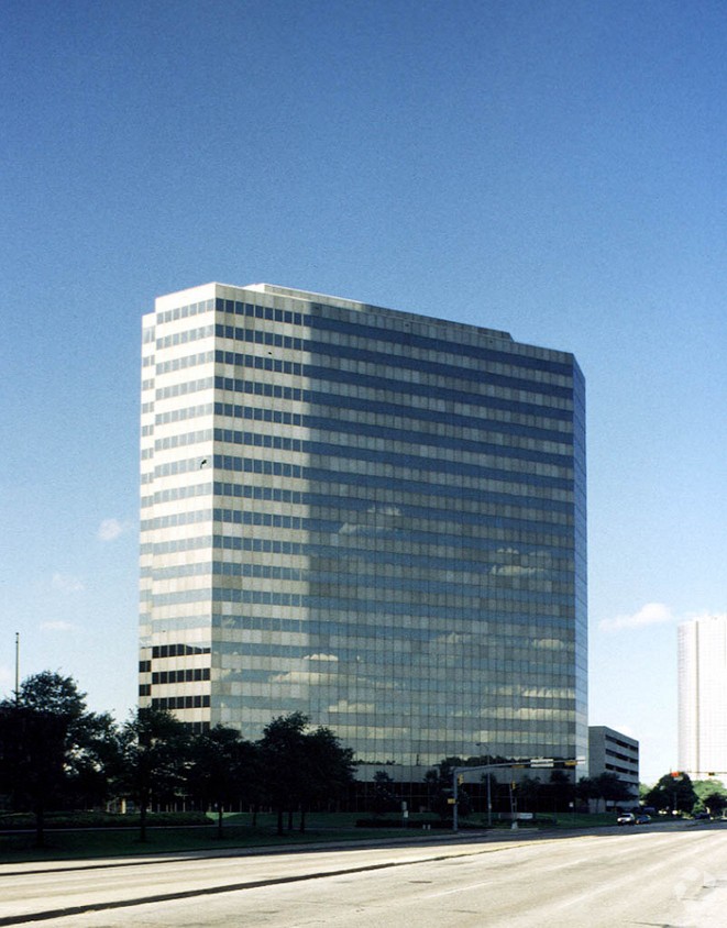 Schlumberger Solutions Center is clad in a unique window design of anodized aluminum panels and dual pane reflective glass. The cast-in-place structure consists of 450,508 square feet containing 21 floors. The main lobby is adorned with travertine walls with black granite accents, tastefully decorated with beautiful artwork, and complimented by a black Baby Grand Player Piano set amid tropical and seasonal plants. There is a substantial loading dock located on the basement level, along with multiple storage facilities. The eight-level parking garage accommodates 1,400 vehicles, and is connected to the building via an enclosed glass walkway, while the 49-space surface lot provides for ample visitor and ADA parking as an added convenience.